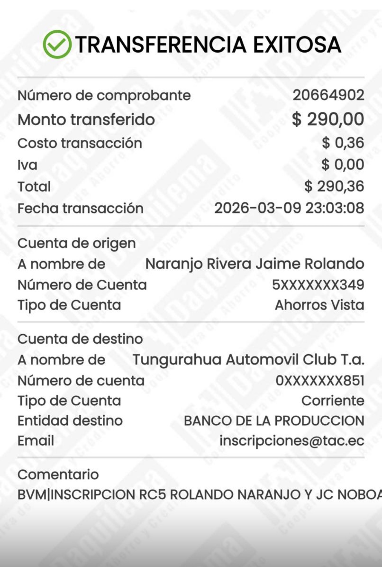 | Rally 2 / R5 - a partir del vehículo N° 10 |